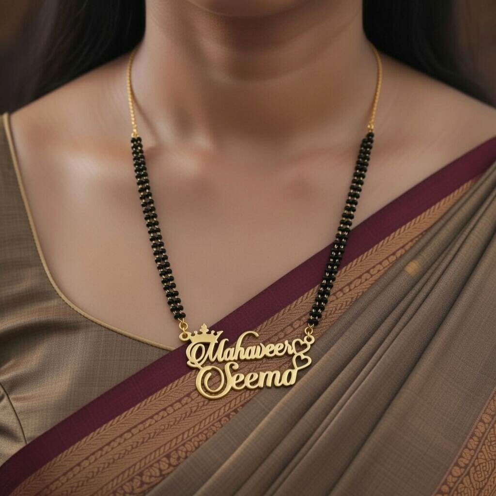 Each piece is customized with the name of your choice, symbolizing love, commitment, and eternity. Designed with classic black beads and a premium gold-finish name pendant, it’s a meaningful jewellery piece every woman will cherish.